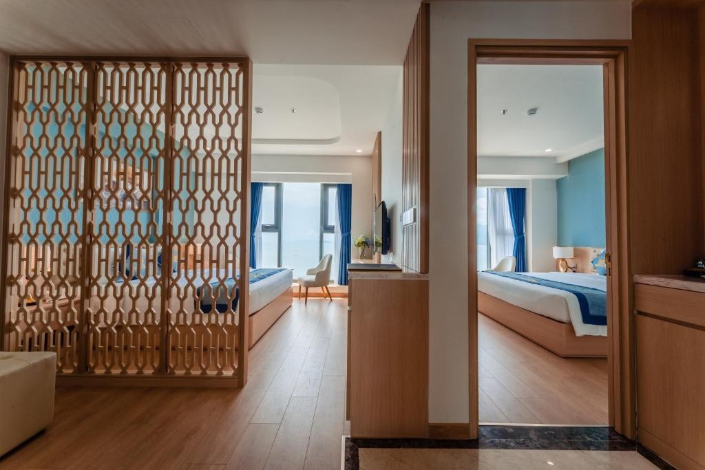 Bạn Huy (review 5/5, đánh giá): “Đã tự trải nghiệm và đặt phòng cho người thân từ HCM ra nghỉ ngơi thì nhận xét chung của 2 ae là khách sạn mới, phòng ốc hiện đại, view hướng biển đẹp. Phục vụ thân thiện và đồ ăn ngon. Recommend đến mọi người. Sẽ quay lại.”