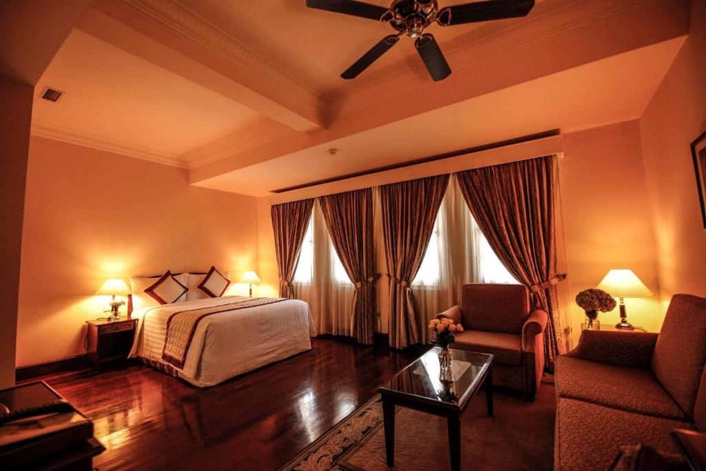 Bên cạnh đó, khách sạn còn có quầy Bar Le Select sành điệu và bí ẩn như một lâu đài cổ trầm mặc trong ánh chiều tà đầy quyến rũ. Quý khách cũng có thể thư giãn tại Le Select Bar, nhân viên quầy bar chuyên nghiệp, ở đây chỉ sử dụng những nguyên liệu tươi ngon nhất với đa dạng các loại rượu nho, rượu whisky nổi tiếng kèm trà và cafe thư giãn không phụ thu. Chính những điều đó khiến mọi ánh mắt đều bị hút vào trong đó.