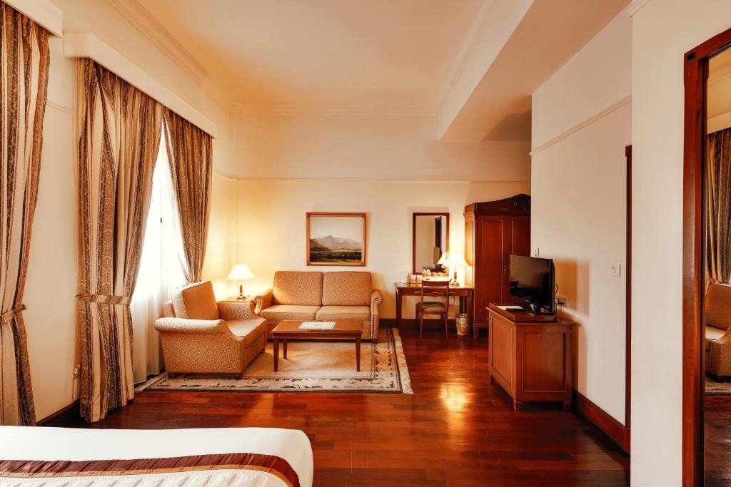 Căn phòng tại khách sạn Du Parc Đà Lạt được trang bị đầy đủ như tivi màn hình phẳng, wifi miễn phí tốc độ cao, ghế sofa mềm mại, máy sấy tóc, đồ dùng vệ sinh đảm bảo an toàn sức khỏe và nhiều tiện nghi đầy đủ khác nữa. Phòng Standard mang phong cách di sản nhưng rất ấm áp nhẹ nhàng, đem lại cho bạn giấc ngủ ngon mỗi tối và thức dậy với tinh thần tràn đầy sức sống đón niềm vui.