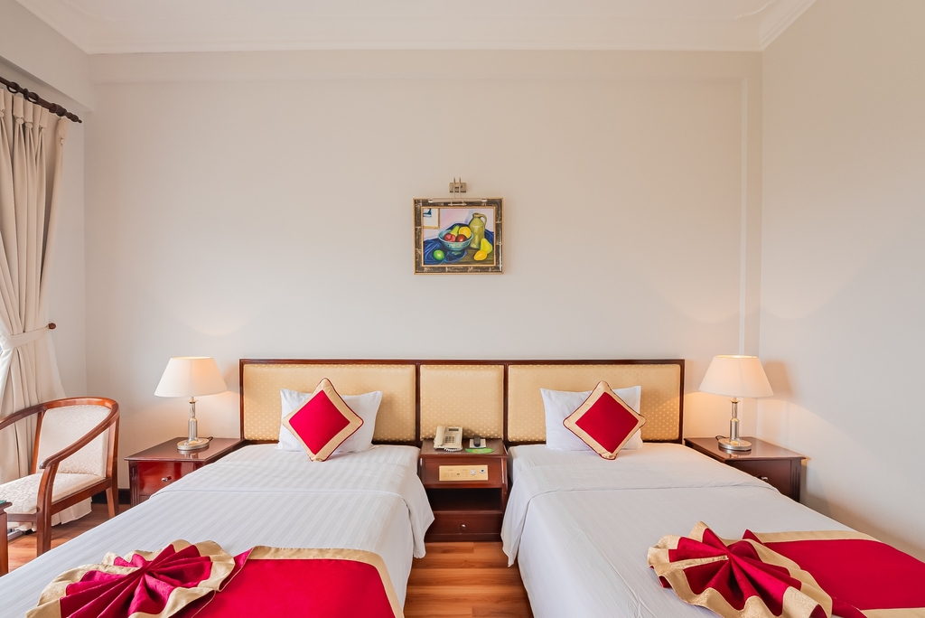 Tiếp đến là Deluxe Seaview Twin cũng tương tự như Deluxe Seaview Single nhưng lại được thiết kế 2 giường đơn. Sự hài hòa giữa kiến trúc đặc sắc và nội thất trang nhã, hiện đại, hạng phòng này luôn sẵn sàng mang đến cho bạn những phút giây thư thái, thoải mái nhất ở khách sạn Hải Âu Quy Nhơn.