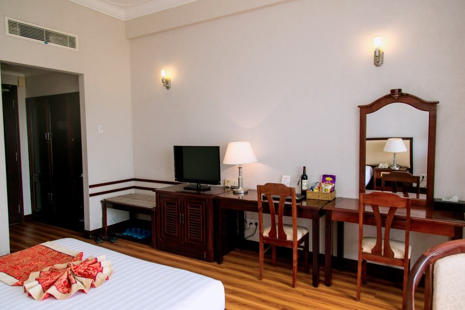 Cũng với 25m2 nhưng Superior Double của khách sạn Hải Âu Quy Nhơn được bố trí chiếc giường đôi êm ái và đầy đủ tiện nghi. Đây là sự lựa chọn phù hợp rất đáng đồng tiền cho những cặp đôi uyên ương muốn tận hưởng tuần trăng mật hạnh phúc. Sự kết hợp hài hòa giữa nội thất cùng tông màu ấm áp đã gợi lên một không gian vô cùng ngọt ngào.