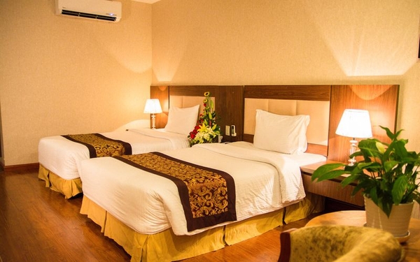 Phòng có diện tích 35m2, có hướng nhìn ra thành phố, phòng có 3 giường đơn 1,2m x 2m. các phòng đều được trang bị tiện nghi đầy đủ, nhà tắm rộng rãi, có bồn tắm sang trọng.