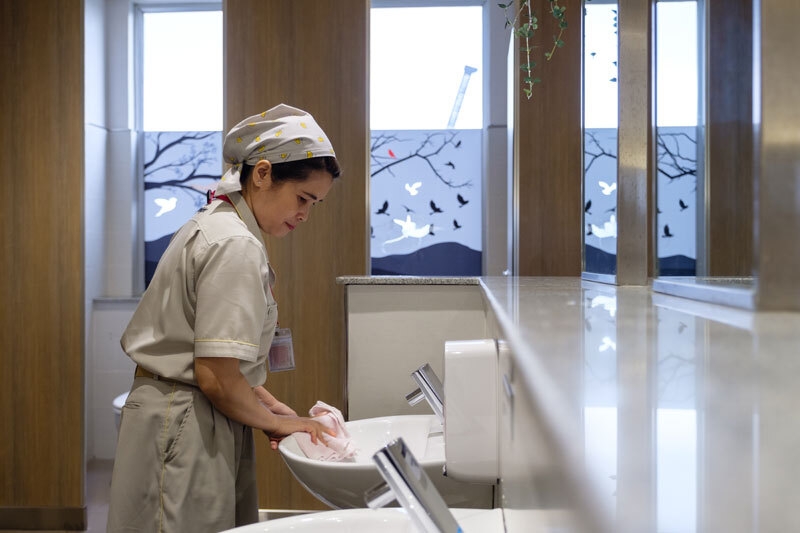Đặc biệt nhất trong hạng phòng này là nhà tắm có lắp cửa kính, ốp đá cẩm thạch màu trắng xám cùng với đồ nội thất trắng đen. Nhờ vậy mà không gian càng trở nên sang trọng và hiện đại hơn.