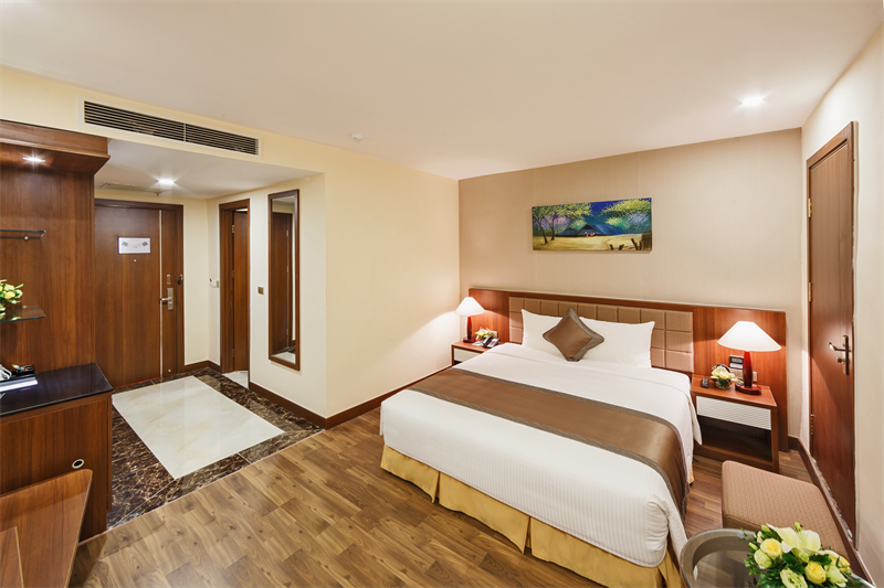 Phòng Superior Mường Thanh Đà Nẵng có diện tích nhỏ nhất trong hệ thống phòng ốc, với diện tích khoảng 27m2. Tuy nhiên, nhờ thiết kế thông minh du khách vẫn có không gian nghỉ ngơi thoải mái mà rất đỗi gần gũi, ấm áp.