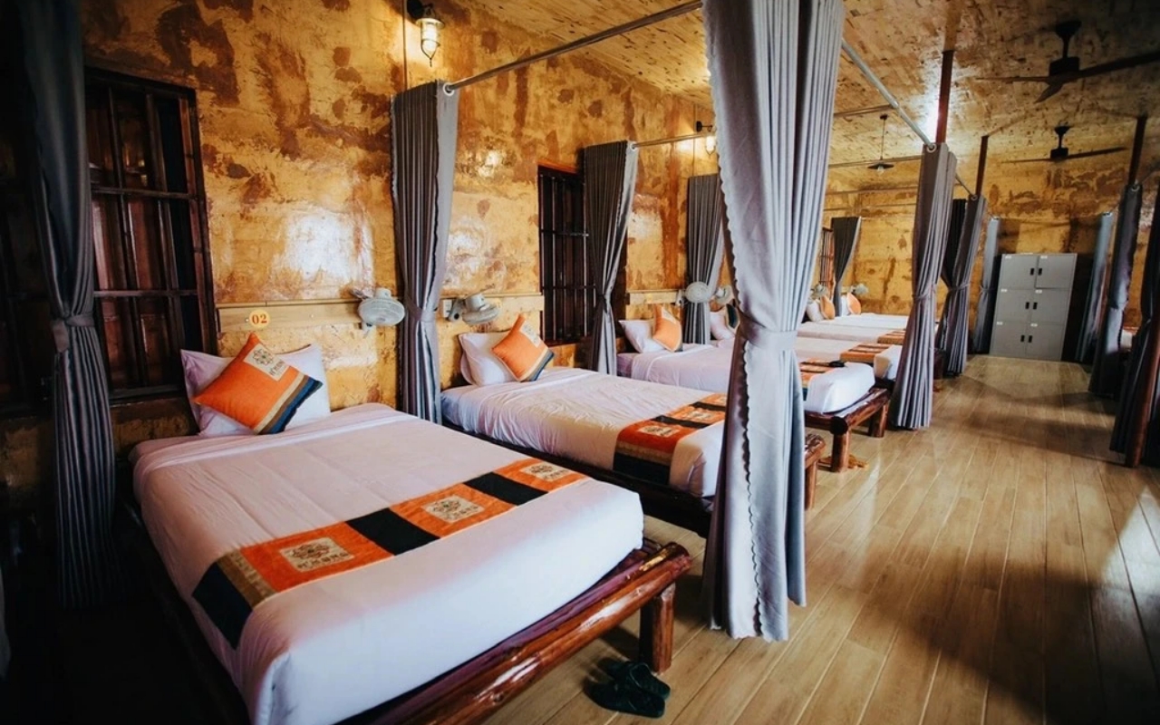 Phòng nghỉ tập thể được thiết kế với kiến trúc nhà trình tường, lợp ngói âm dương phù hợp cho nhóm bạn đi chơi, họp lớp, công ty hoặc 1 gia đình muốn ở cùng nhau. Phòng được trang bị những thiết bị hiện đại với đệm cao su cao cấp, tủ để đồ, đèn đọc sách, nhà vệ sinh sạch sẽ.