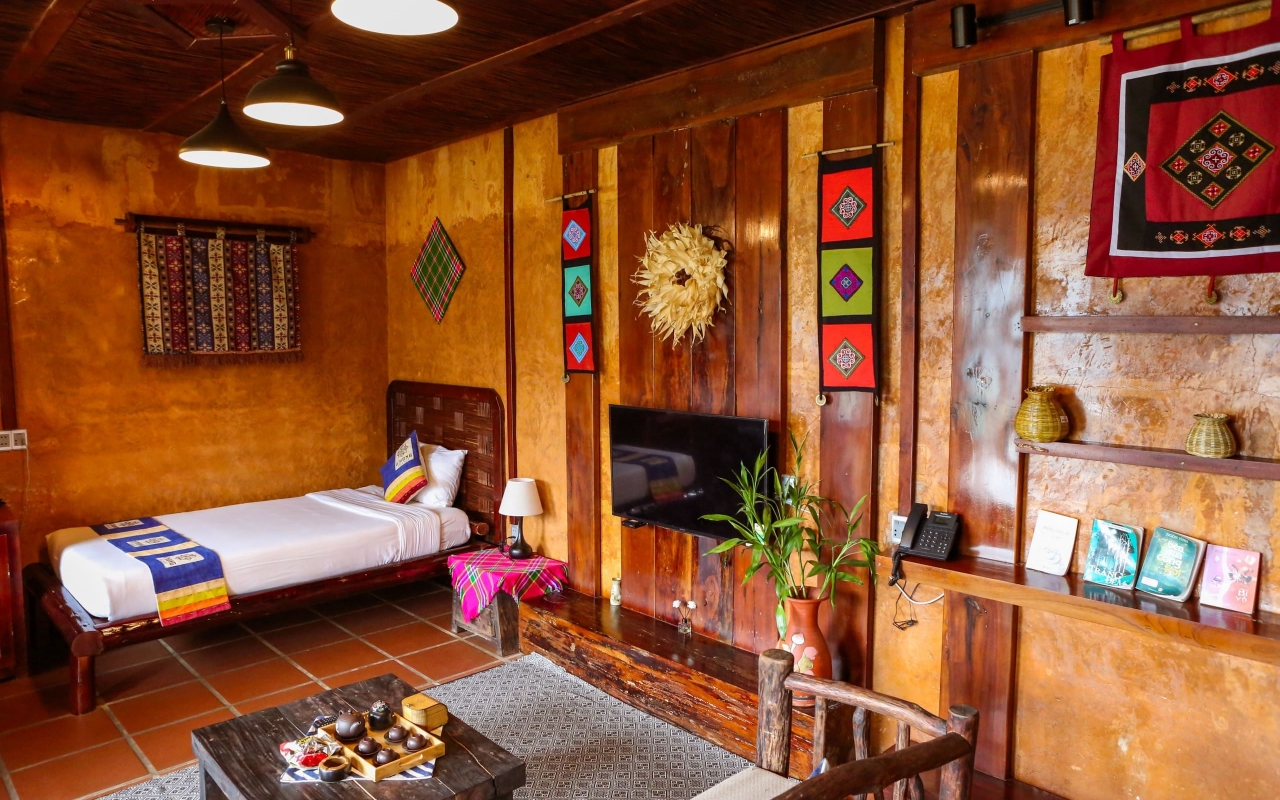 Phòng tiêu chuẩn được làm theo kiến trúc truyền thống của người Mông, với tường nhà được làm bằng đất, lợp mái ngói âm dương. Nghỉ tại phòng sẽ cho bạn cảm giác mát mẻ vào mùa hè và ấm áp vào mùa đông. Với tầm view bao trọn thung lũng Tráng Kìm, cùng với dãy núi Bát Đại Sơn ngang tầm mắt chắc chắn sẽ cho bạn những giây phút nghỉ dưỡng thoải mái nhất.