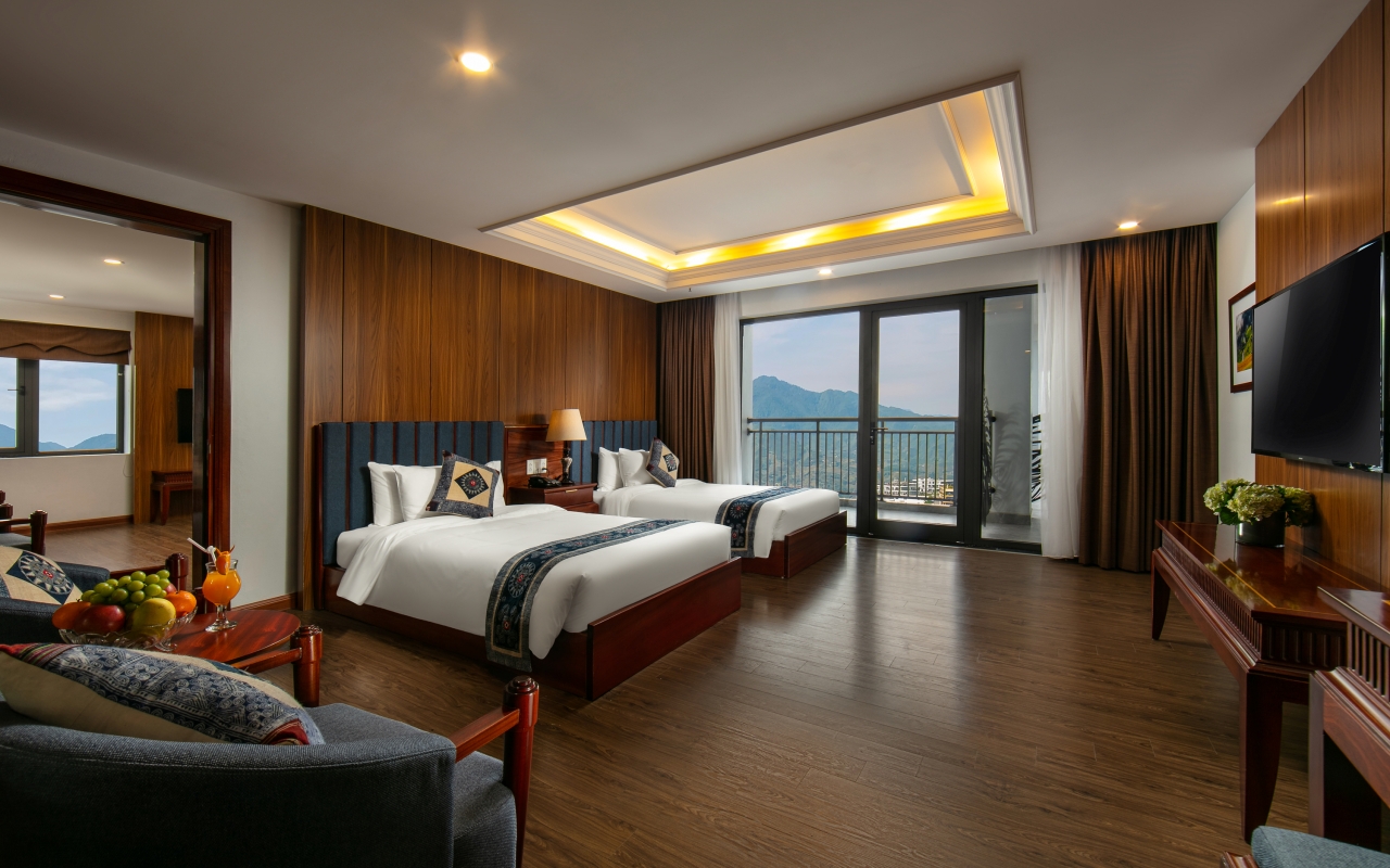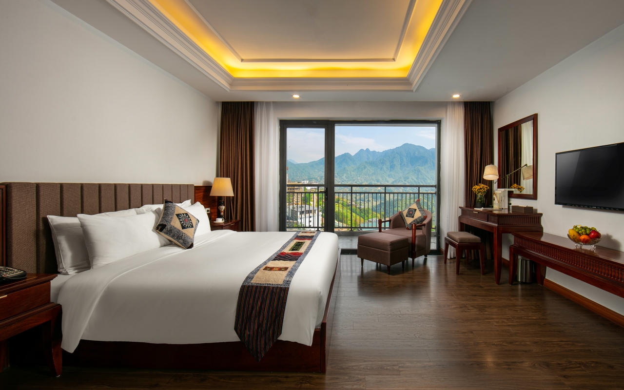 Đúng như tên gọi, Deluxe Mountain View đem đến cho Du khách cái nhìn toàn cảnh về thiên nhiên hoang sơ, hùng vĩ của dãy Hoàng Liên Sơn, cùng nét thơ mộng, trữ tình của thung lũng Mường Hoa. Trong khi đó, không gian bên trong phòng cũng được thiết kế đầy ấn tượng. Hơi thở núi rừng như khắc tạc trong từng chi tiết decor, để Du khách thỏa sức đắm chìm trong sắc xanh tinh khiết của đại ngàn. Deluxe Mountain View chính là mảnh ghép lý tưởng làm nên chuyến hành trình khám phá đầy thú vị tại Sapa.