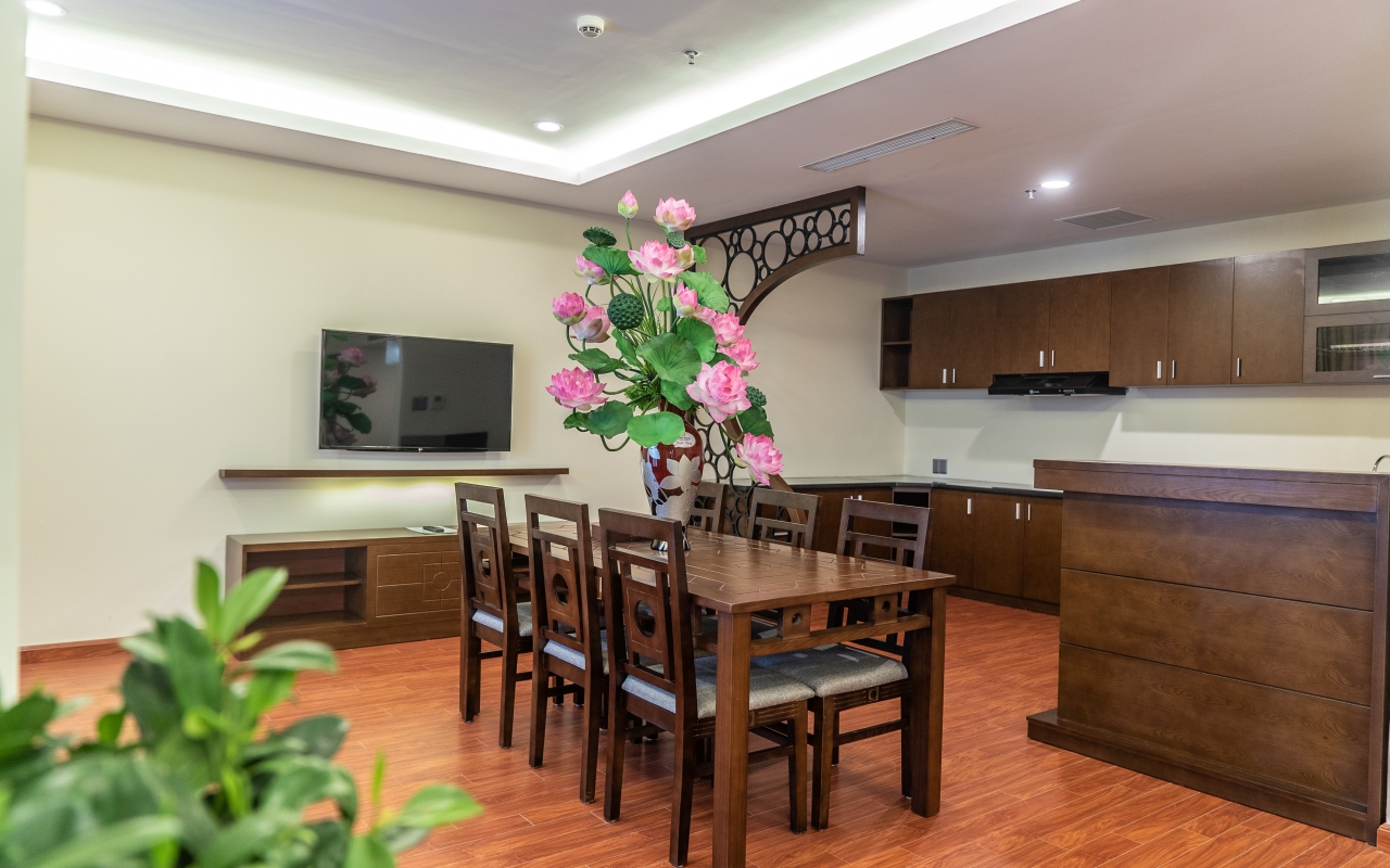 Tận hưởng không gian riêng tư thoải mái với phong cách sang trọng, tất cả những căn hộ cao cấp tại Khách sạn đều được thiết kế rộng rãi với phòng ngủ, phòng khách, …và trang bị đầy đủ trang thiết bị. Từ đây Quý khách có thể phóng tầm mắt ra thành phố hay hồ Văn Lang.