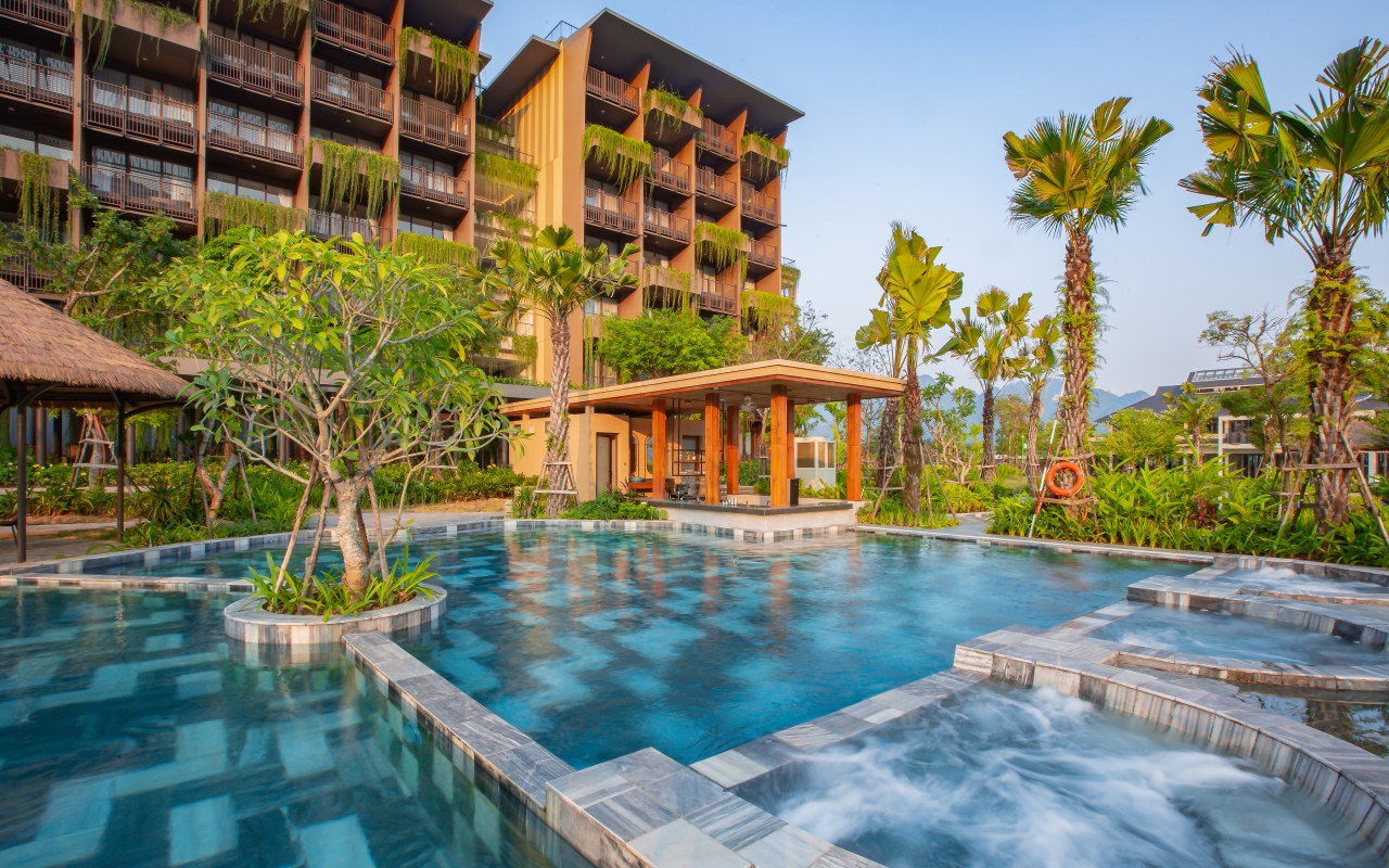 Hệ thống bể đa dạng (bể bơi thường, bể bơi khoáng, bể sục) cùng Khói Pool Bar ngoài trời sẽ là nơi khuấy động những trải nghiệm nghỉ dưỡng, vui chơi chưa từng có.
