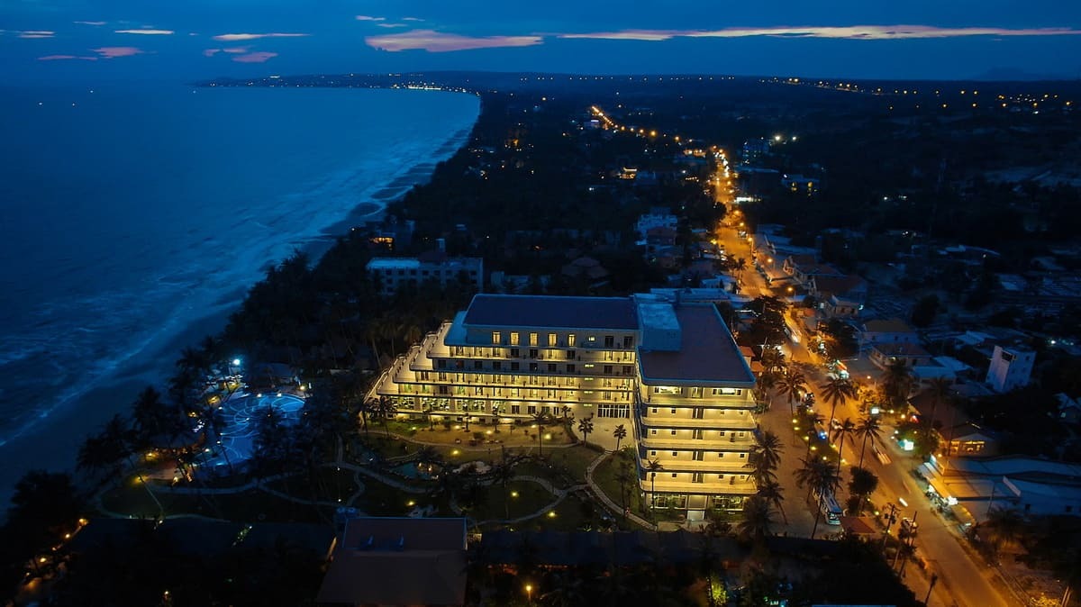 Khách sạn được thiết kế với tiêu chuẩn 4 sao, tự hào mang đến cho du khách một nét kết hợp tươi mới giữa nền văn hóa hiện đại và không gian thiên nhiên hiền hòa của biển xanh, cát trắng, nắng vàng. Từ đây, chỉ cần đi bộ vài bước chân, quý khách đã đứng trước bãi biển Mũi Né hoang sơ và xinh đẹp để hoà mình vào không khỉ biển trong lành và tươi mát.